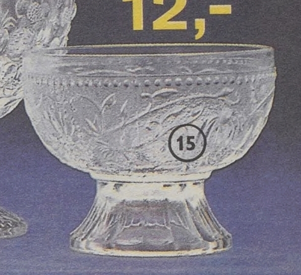 Magnet 1988–1989 str. 103 / obj. č. 505004 Kčs 12.–,– Zmrzlinový pohár z lisovaného skla. výška: výrobce: designer: vyráběno od: