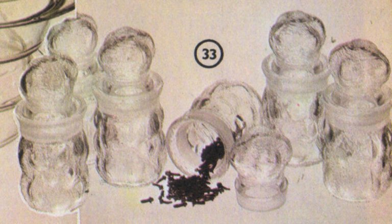 Magnet 1985–1986 str. 136 / obj. č. 502433 Kčs 92.–,– Souprava 6 kořenek z lisovaného skla. výška: výrobce: designer: vyráběno od: