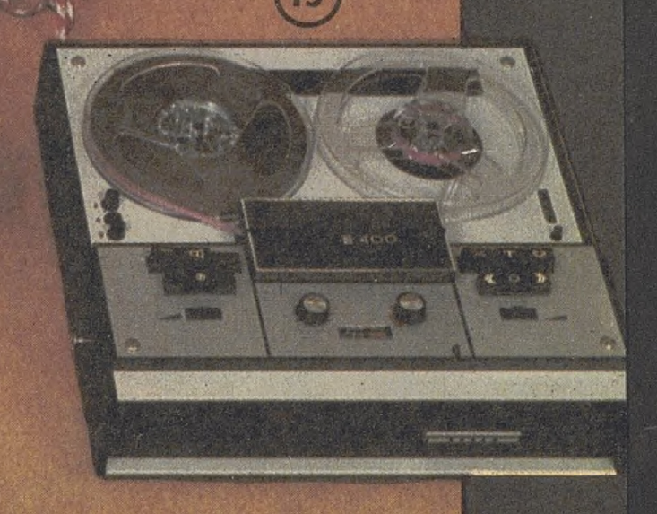 B 400 je nový model síťového magnetofonu, navazující na osvědčené typy řady B 4. Je plně tranzistorován čtyřstopý třírychlostní (2,38/4,76/19,53 cm/sec a má přípojky pro rozhlas, gramo, mikrofon, sluchátka, zesilovač, příd. reproduktor a pro dálkové ovládání start-stop. Vybaven je pohotovostním stoptlačítkem, indikátorem záznamu a čtyřmístným počítadlem. Umožňuje hlasitý příposlech při záznamu, trikové nahrávky a při použití spec. zesilovače stereofonní záznam. Výstupní výkon 4,5 W. Příkon 30 W, kmitočet 50-16 000 Hz. Váha 7 kg.
