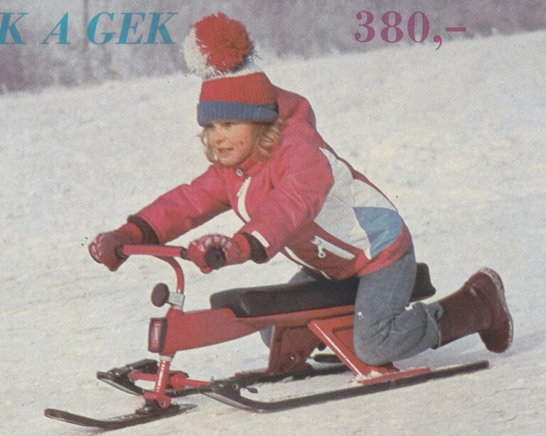 ČUK A GEK – dětský dvoustopý skibob s čalouněným sedátkem. Hliníkové skluznice s vodicími hranami – ostatní části z litého hliníku. Skibob je snadno rozebratelný a zaujme moderním tvarem a jednoduchým ovládáním při sjezdu i slalomu. DOVOZ.