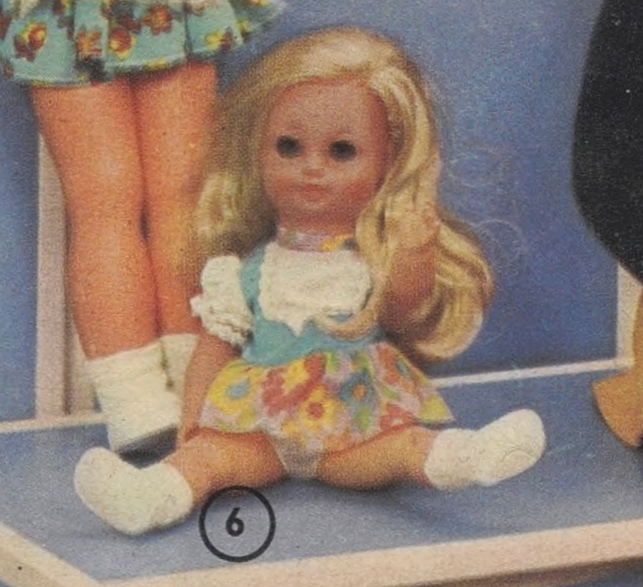 Panenka druh 344 Magnet 1978–1979 str. 65 / obj. č. 132035 Kčs 65 Panenka druh 344 – jedna z kolekce panenek dovážených z NDR. Od panenek, které jsou vedle ní, se liší pouze oblečením a barvou vlasů. výška: výrobce: designer: vyráběno od: