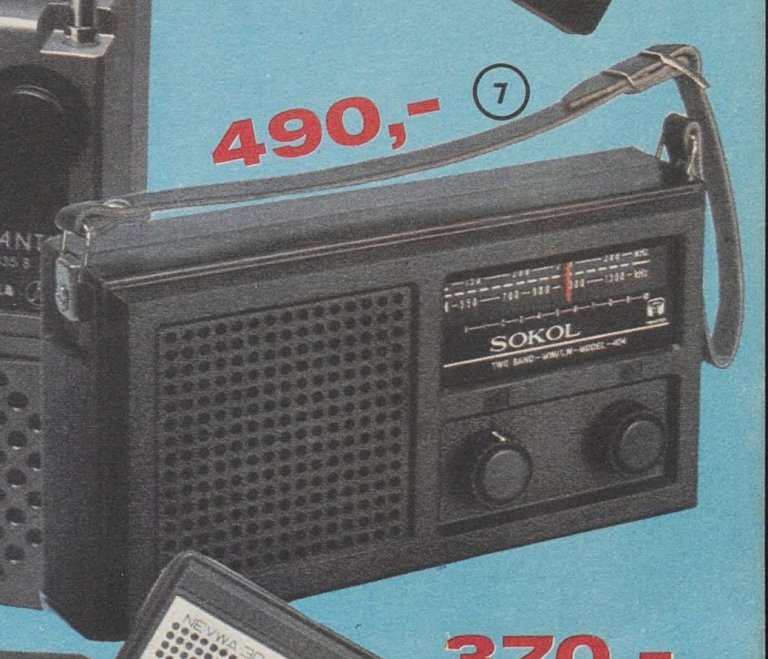 SOKOL Magnet str. 45 / obj. č. 282002 Kčs 490 SOKOL – malý rozhlasový přijímač s rozsahem DV a SV. Feritová anténa, rozměry 205×60×110 mm. výška: výrobce: designer: vyráběno od: